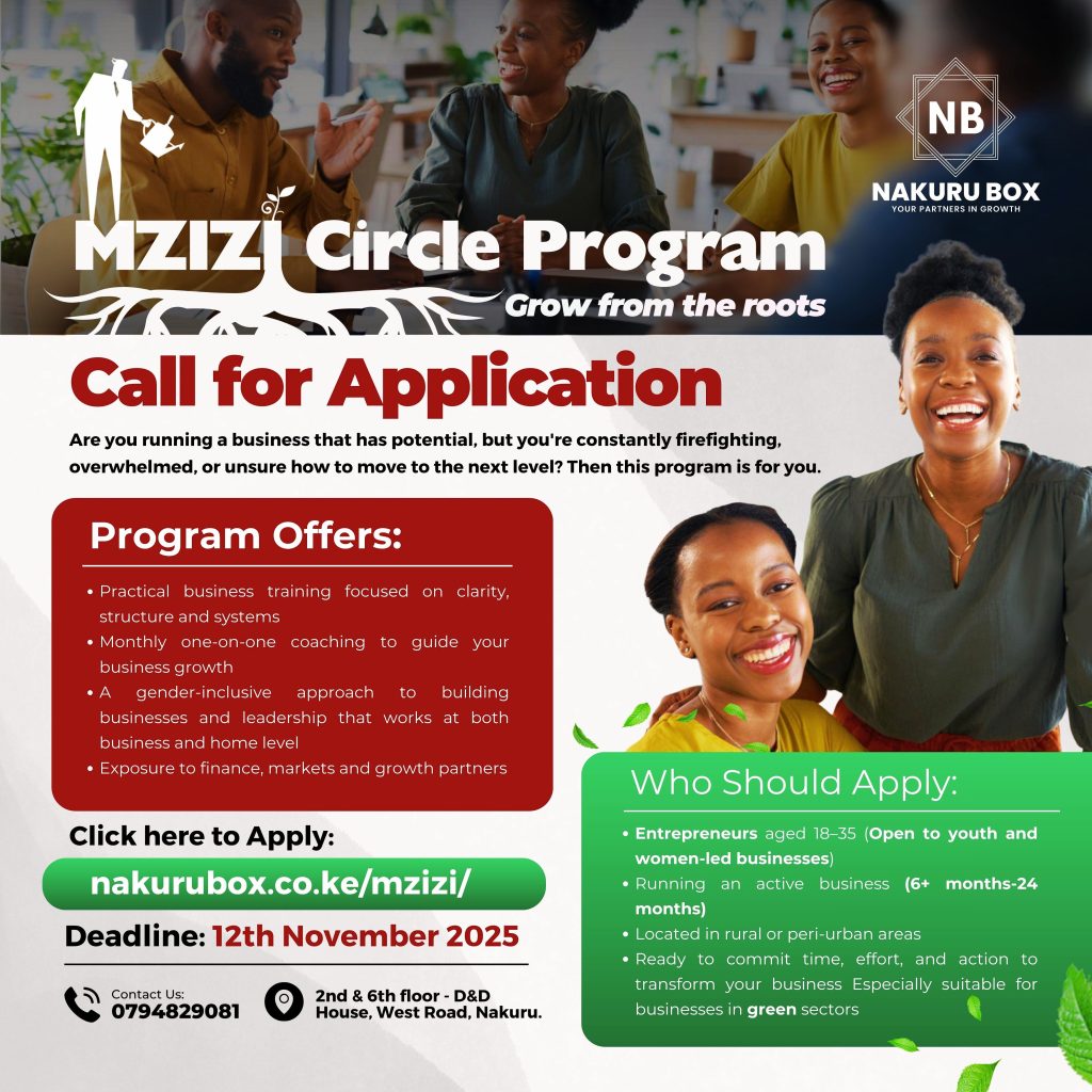 🌱 Applications Now Open!Join the Mzizi Circle Program and grow your business from the roots up.Gain practical training, personalized coaching, and access to finance and markets, all designed to help you build a thriving, sustainable business.